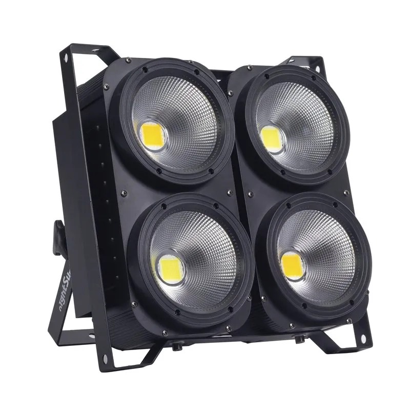 Lámpara cegadora dotada de 4 LED x 100W, tiene un rango de temperatura de color de 3000k a 5600k y una cobertura de 60º. Esta lámpara está construida en una robusta carcasa de aluminio que la protege de golpes, lo que hace apta para ser usada por empresas de producción de eventos.