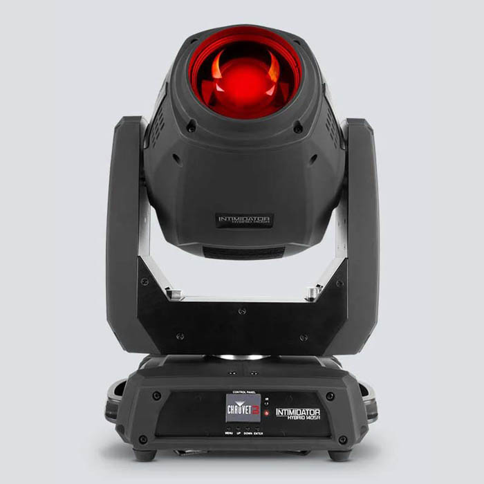 Intimidator Hybrid 140SR es una poderosa cabeza móvil ‘todo en uno’ que se transforma con facilidad en SPOT, BEAM o WASH. Equipada con una intensa lámpara de descarga de 140 Watts y un enfoque motorizado, proyecta gobos y haces de luz perfectamente definidos a virtualmente cualquier distancia. Dos prismas independientes que además es posible superponerlos, producen atractivos efectos dinámicos. Dos ruedas de gobos facilitan la transición entre dos figuras para crear sorprendentes proyecciones aéreas. El zoom motorizado funciona en los modos beam, spot y wash, para obtener un control total sobre el haz de luz. La configuración es sencilla con la pantalla completa de color, y es compatible con el control remoto inalámbrico IRC-6. Incorpora la función en modo tótem, y la memoria interna permite crear y almacenar una escena completa para un funcionamiento autónomo. La alimentación encadenada ahorra cables y tiempo de instalación