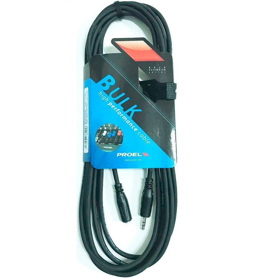 Extensión balanceada Proel BULK515LU3 ensamblado con conector jack estéreo moldeado PROEL 3,5 mm a plug jack de conexión estéreo moldeado PROEL 3,5 mm. Longitud: 5 metros, color negro. Perfecto para conectar a cualquier audífono estándar, solucionando los inconvenientes de distancia.